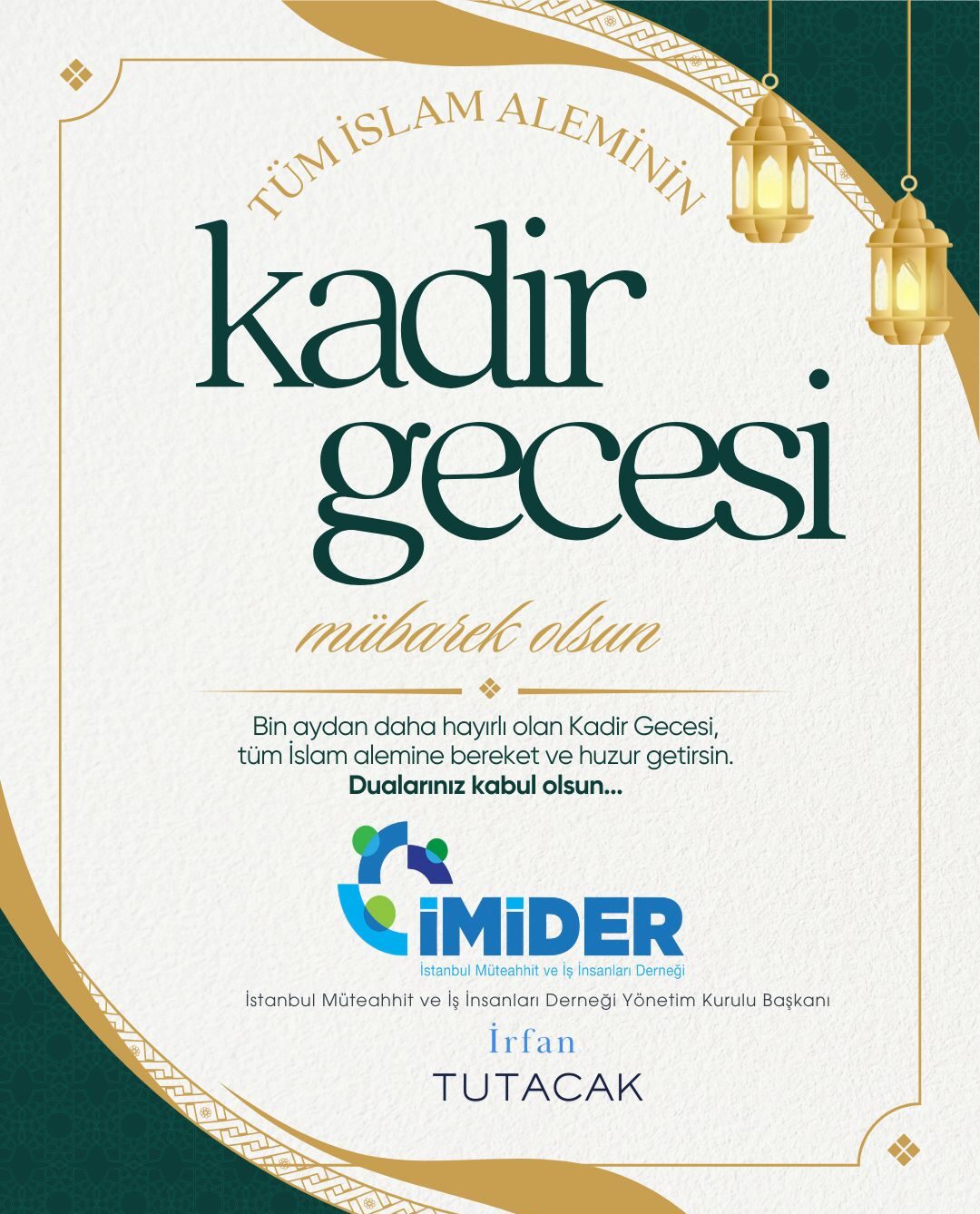 İstanbul Müteahhit ve İş İnsanları Derneği Başkanı İrfan Tutacak, Kadir Gecesi dolayısıyla bir mesaj yayımlayarak barış ve kardeşlik dileğinde bulundu.