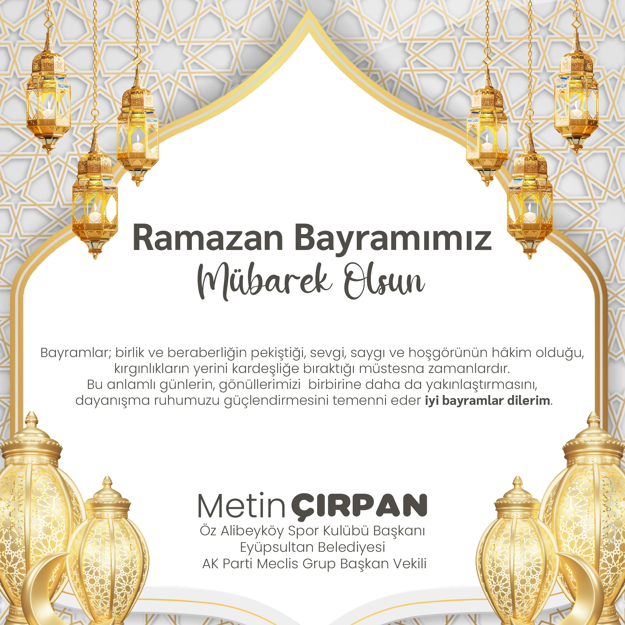 Toplumun birlik ve beraberliğini pekiştiren Ramazan Bayramı dolayısıyla bir mesaj yayımlayan Metin Çırpan, bayramların sevgi, hoşgörü ve dayanışma duygularının en yoğun yaşandığı özel günler olduğunu vurguladı.